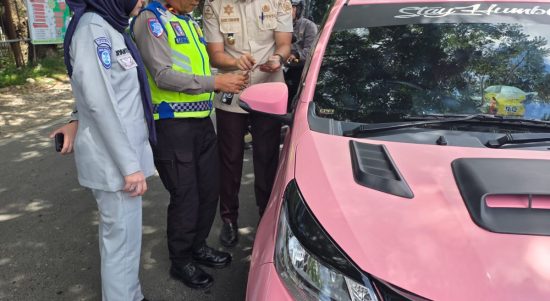 BONE – Personel Unit Turjawali Satlantas Polres Bone melaksanakan kegiatan lintas sektoral bersama UPT Samsat Bone dan Jasa Raharja menggelar operasi penertiban