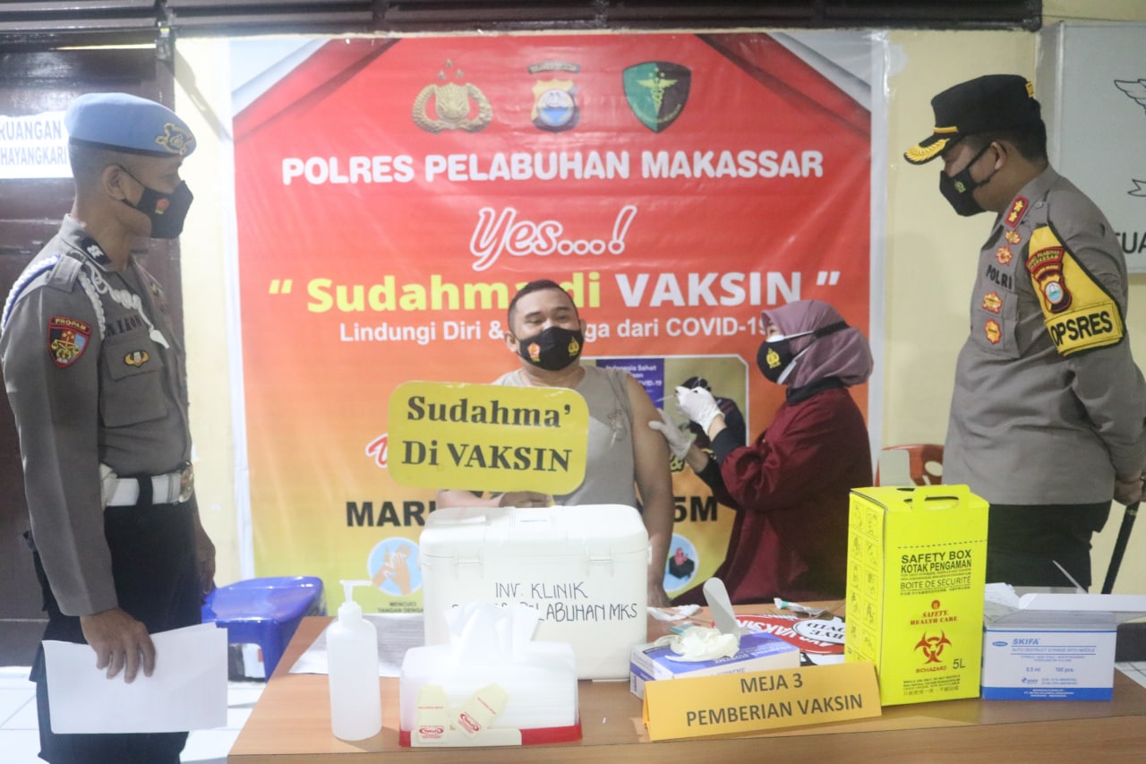 “Vaksinasi Covid-19 bertujuan untuk melindungi dan memperkuat sistem kesehatan secara menyeluruh, juga menjaga produktivitas dan mengurangi dampak sosial dan ekonomi masyarakat,” Ucap Kapolres Pelabuhan Makassar AKBP Muhammad Kadarislam Kasim SH, Sik, M.Si.