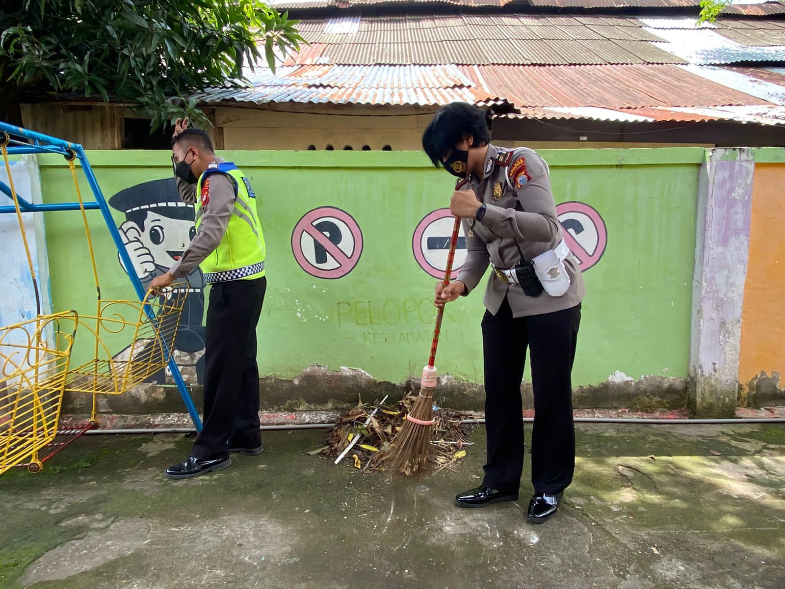BANTAENG –  Untuk menjaga kebersihan dan kenyamanan di lingkungan Polres Bantaeng, Personel Satuan Lalu Lintas (Satlantas) Polres Bantaeng menggelar kurve di TK Kemala Bhayangkari. Rabu pagi (15/12/2021).