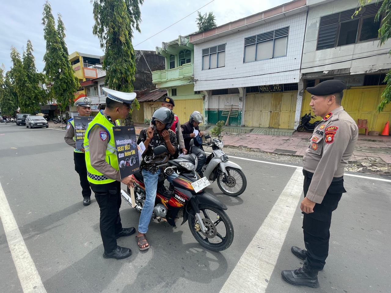 Dari pantauan dilapangan, anggota kepolisian mengajak sejumlah pengendara roda dua dan lebih.