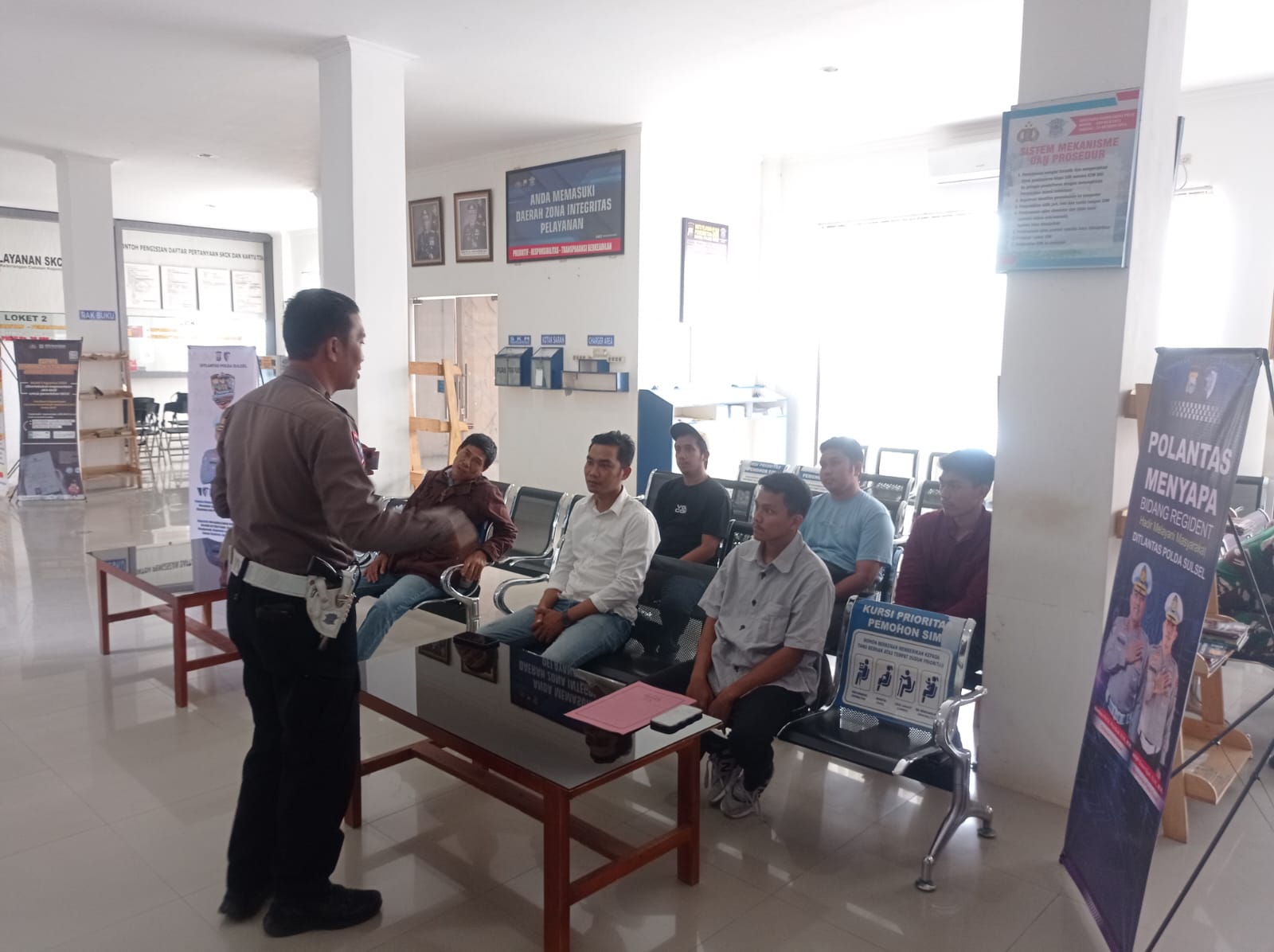 Dalam kegiatan tersebut, petugas Satlantas memberikan pemahaman kepada para pemohon mengenai pentingnya tertib berlalu lintas, kelengkapan administrasi, serta tahapan proses penerbitan SIM mulai dari registrasi, identifikasi, ujian teori, hingga ujian praktik.