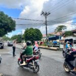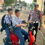 BONE – Personel Satlantas Polres Bone, memberikan teguran secara humanis kepada pengendara sepeda motor yang tidak menggunakan helm SNI, saat melakukan pengaturan