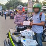 BONE – Personel Satlantas Polres Bone Aiptu Nataniel T memberikan teguran kepada pengendara anak dibawah umur yang kedapatan menggunakan kendaraan bermotor saat