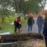 BONE — Tim Search And Rescue (SAR) Brimob Batalyon C Pelopor kembali terjun menebang dan memangkas cabang pohon di Jalan Poros Cempalagi,